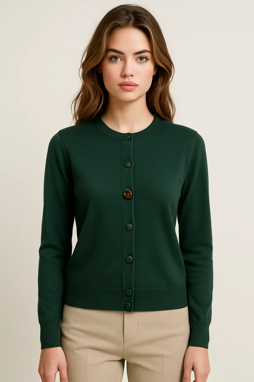 Maglia coreana realizzata in pura lana merino, una fibra naturale pregiata che unisce morbidezza, calore e traspirabilità. Il modello è arricchito da raffinati bottoni gioiello che donano luce e personalità al capo, trasformandolo in un dettaglio distintivo del guardaroba. La linea essenziale con collo coreana sottolinea l’eleganza sobria, mentre i bottoni gioiello aggiungono un tocco sofisticato e femminile. Versatile e chic, è ideale sia per outfit quotidiani ricercati che per occasioni formali.